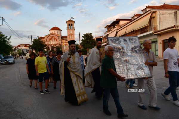 Τον Εσπερινό και την Παράκληση στην Παναγία τέλεσαν οι Ιερείς π. Ιωάννης και π. Γεώργιος Μητροσύλης. Η εικόνα θα παραμένει στον βυζαντινό Ναό μέχρι και την κυριώνυμη ημέρα οπότε μετά τη θεία λειτουργία επιστρέφει και πάλι στη νέα Εκκλησία του χωριού.