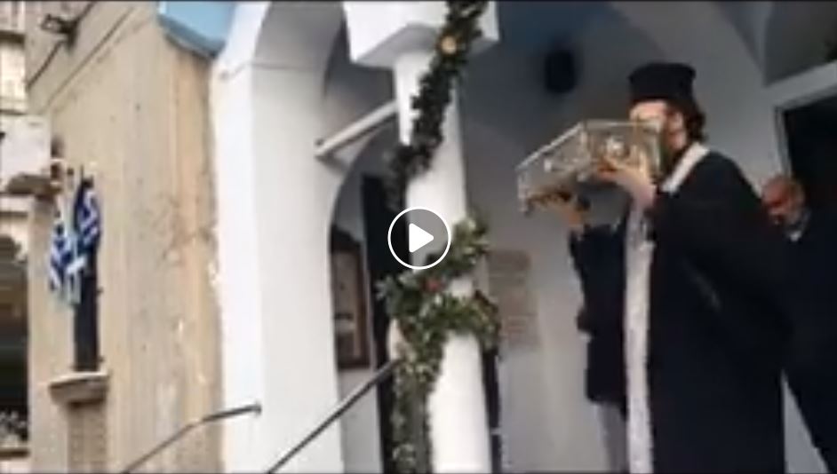 Στο προαύλιο του Ι.Ν. Ευαγγελιστρίας, υποδέχτηκαν τα Άγια Λείψανα, ο Πανοσιολ. Αρχιμανδρίτης Αθηναγόρας Κολυβάς προσμονάριος των Ι. Λειψάνων της Αγίας Ματρώνης, μαζί με εφημέριους του Ιερού Ναού.