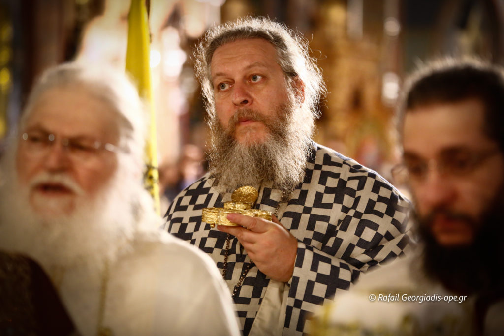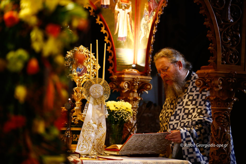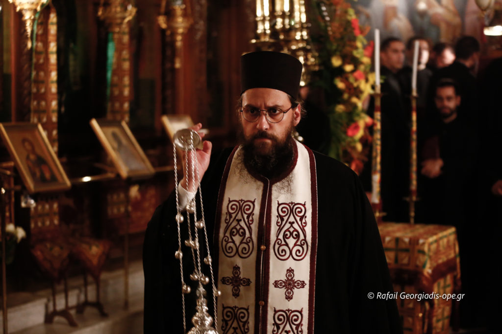 Προέστη ο Καθηγούμενος της Ιεράς Μεγίστης Μονής Βατοπαιδίου Γέροντας Εφραίμ πλαισιούμενος από τον Προϊστάμενο του Ναού Πρωτ. Θεμιστοκλή Χριστοδούλου, Βατοπαιδινούς πατέρες και ιερείς της Ιεράς Αρχιεπισκοπής Αθηνών.