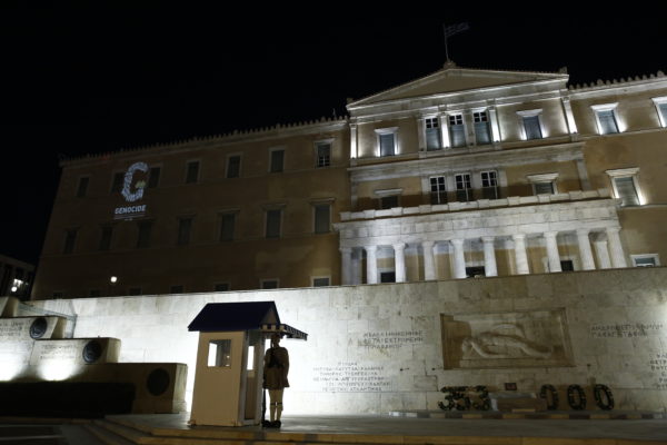 Με το συμβολικό λογότυπο-μήνυμα για την Ημέρα Μνήμης της Γενοκτονίας των Ελλήνων του Πόντου φωταγώγησε απόψε την πρόσοψη του κτηρίου της η Βουλή των Ελλήνων.