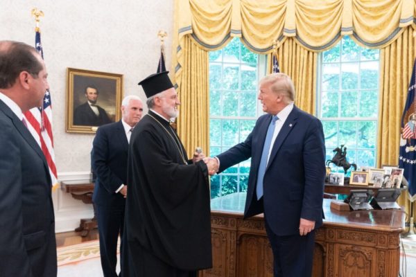 Τον Ιούλιο του 2019 ο πρόεδρος των ΗΠΑ, Ντόναλντ Τραμπ, είχε επίσημη συνάντηση με τον Αρχιεπίσκοπο Αμερικής Ελπιδοφόρο στο Προεδρικό Γραφείο με τον Τραμπ να δηλώνει λίγο μετά ότι η συνάντηση διεξήχθη σε πολύ καλό κλίμα, ενώ ο Αρχιεπίσκοπος σε δηλώσεις του ανέφερε ότι ο πρόεδρος Τραμπ είναι έτοιμος να υποστηρίξει τους χριστιανούς σε όλο τον κόσμο και να υποστηρίξει και το Οικουμενικό μας Πατριαρχείο.