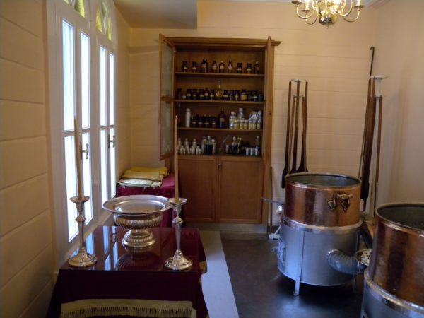 Εκεί οι μυρεψοί φυλάσσουν πενήντα επτά συστατικά (αρωματικά φυτά, αιθέρια έλαια, κ.τ.λ.), στις απαιτούμενες ποσότητες και αναλογίες, τα οποία θα χρησιμοποιηθούν για να παρασκευαστεί το Μύρο.