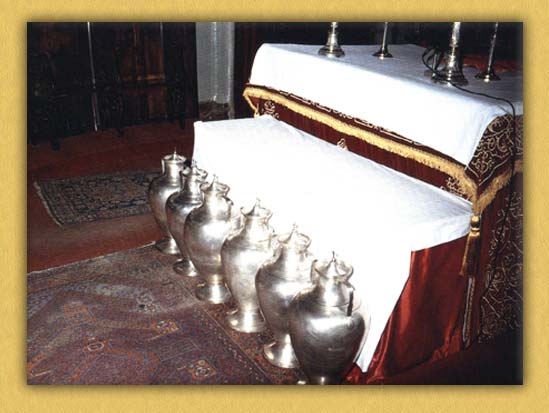 Οι αργυροί αμφορείς όπισθεν της Αγίας Τραπέζης εις τον πάνσεπτον Πατριαρχικόν Ναόν του Αγίου Γεωργίου. (1992)