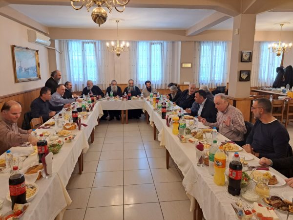 Ύστερα μεταβήκαμε στην τραπεζαρία όπου ο συμφοιτητής μας και Γενικός Αρχιερατικός Επίτροπος της Ιεράς Μητροπόλεως Θεσσαλονίκης π. Φώτιος Ζαρζαβατσάκης μας παρέθεσε Αβραμιαία φιλοξενία. Εκεί ένας-ένας μετέφερε τα συναισθήματά του για τη συνάντηση, τον δρόμο που ακολούθησε στη ζωή και την οικογενειακή του κατάσταση.