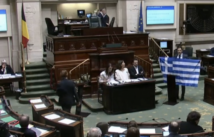 ΒΕΛΓΙΟ: Βουλευτής ύψωσε την ελληνική σημαία σε ομιλία του