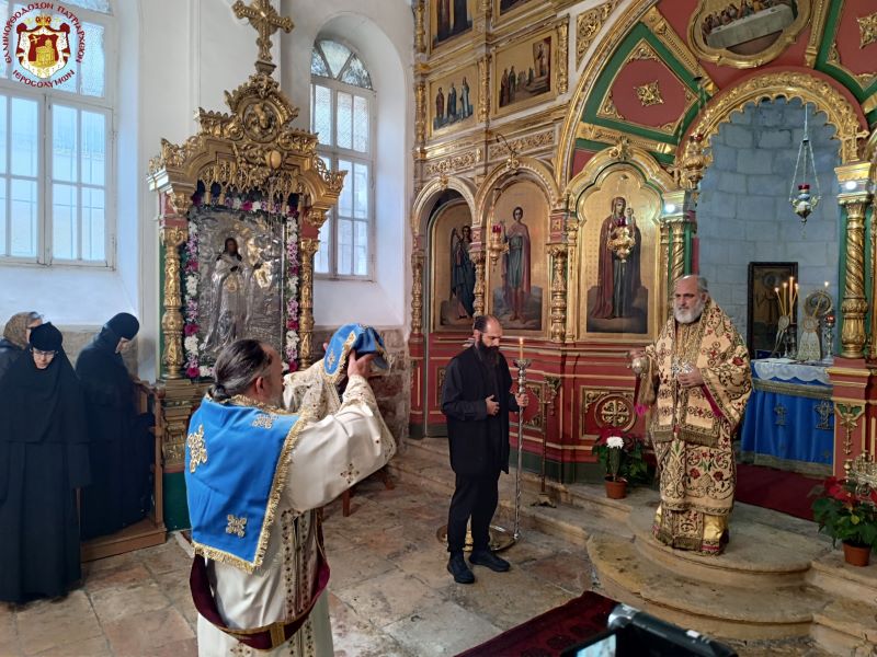 The Vespers in the evening and the Divine Liturgy on the morning of the feast were presided over by His Eminence the Metropolitan Joachim of Helenoupolis, with concelebrants the Archimandrites Philoumenos, Claudios and Christodoulos, the Priest Nektarios and the Archdeacon Mark. The chanting was delivered by Hierodeacon Simeon and the students of the Patriarchal School of Zion, as the service was attended by monks, nuns and believers from Jerusalem and other cities.