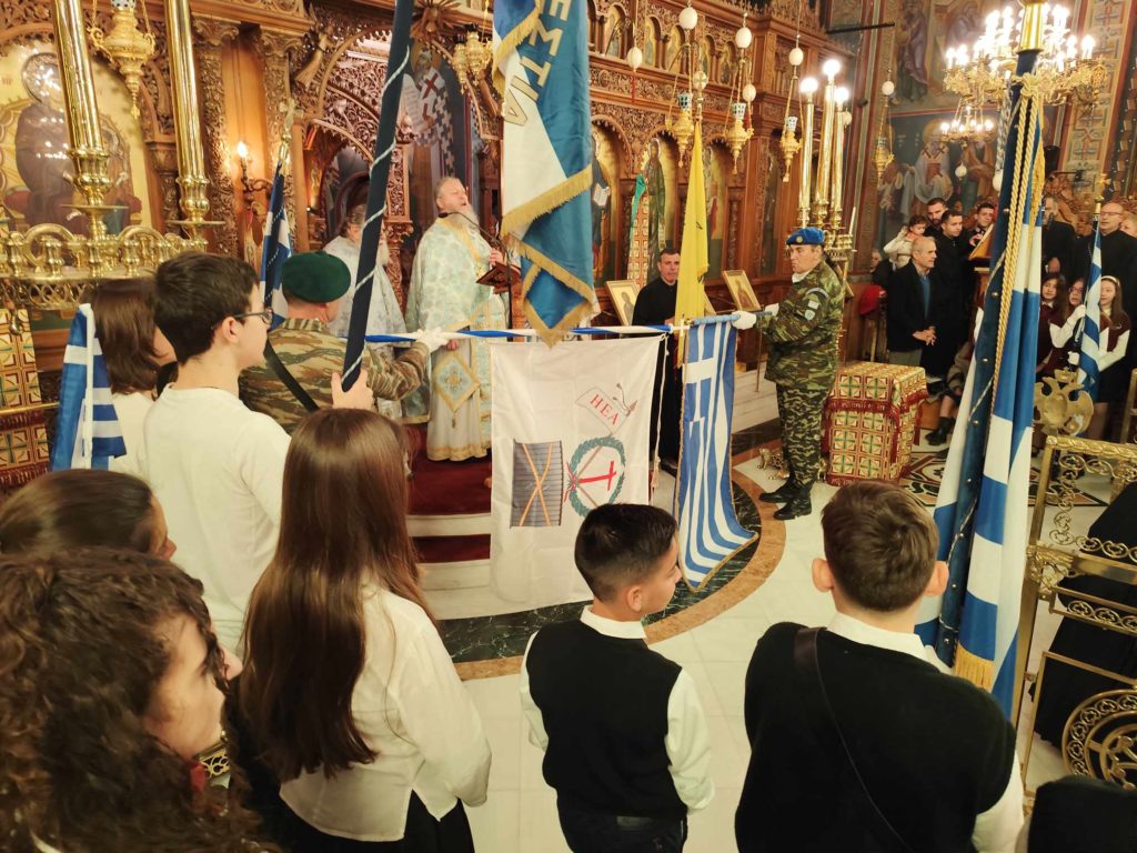 Της πανηγυρικής λειτουργίας χοροστάτησαν οι ευσεβείς ιερείς του Αγίου Ελευθερίου, πατέρες κ.κ. πρωτοπρεσβύτερος Θεμιστοκλής Χριστοδούλου – που είναι και ιερατικός προϊστάμενος του ναού – πρωτοπρεσβύτεροςΚαλπούζος Γεώργιος και οι ιερείς Σπυρίδων Βίτσης και Θωμάς Μάντζιος. Μετά την λειτουργία έλαβε χώρα η πανηγυρική δοξολογία, για το κορυφαίο ιστορικό ορόσημο της 25-ης Μαρτίου, ημέρα της εθνικής παλιγγενεσίας, όπου ομόψυχα ο λαός μας, οι αγωνιστές του βουνού και της στάνης, με τους αγωνιστές της θάλασσας και με την πνευματική επικουρία των προκρίτων, των λογάδων και του προμαχούντος κλήρου, αποτίναξαν το σκληρόν και απαραδειγμάτιστον τουρκικό ζυγό. Συγκινητική η παρουσία τριών δημοτικών σχολείων της περιοχής μετά των δασκάλων τους, αλλά και τμήματος της Εθνοφυλακής, που προσέδωσαν ξεχωριστό ηθικό χρώμα στην εορταστική λειτουργία. Με το πέρας της δοξολογίας με ένα θερμό λόγο που μας ζέστανε στην κυριολεξία την καρδιά και με την επικουρία της πολυμερούς θεολογικής και ιστορικής παιδείας του, ο πατέρας Θεμιστοκλής μίλησε για το εθνικό ορόσημο της 25-ης Μαρτίου και εμφατικά τόνισε την αδήριτη ανάγκη να συμμετέχουμε σε εκδηλώσεις για την ιστορική μνήμη και οι μεγαλύτεροι να μεταδώσουν στους νεότερους, την αγνή, άδολη και με δημοκρατικό ήθος αγάπη για την πατρίδα.