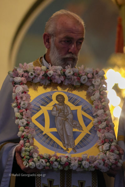 Στο τέλος της ακολουθίας, ο Προϊστάμενος του Ναού Αρχίμ. Νικόλαος Παπαγεωργίου εκ μέρους των Πατέρων ευχήθηκε καταλλήλως και ευχαρίστησε όλους όσους συμμετείχαν στις λατρευτικές εκδηλώσεις.