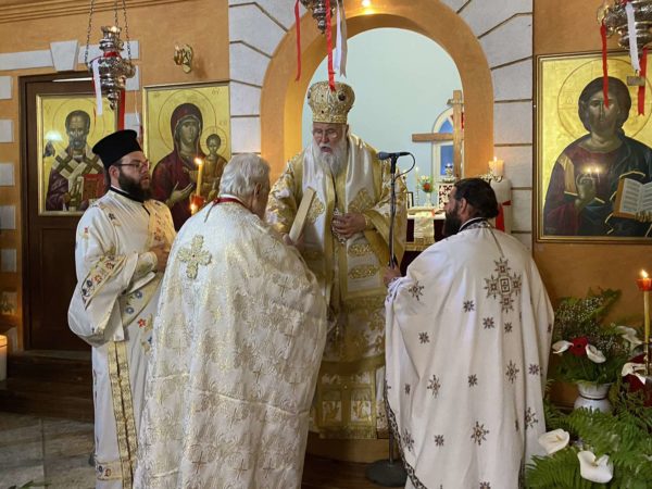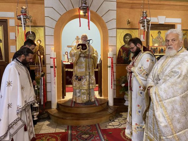 Στο τέλος, ο Σεβασμιώτατος ευχήθηκε Χρόνια Πολλά στους εορτάζοντες, αναφωνώντας την επινίκιο ιαχήν, «Χριστός Ανέστη!- Αληθώς Ανέστη!»