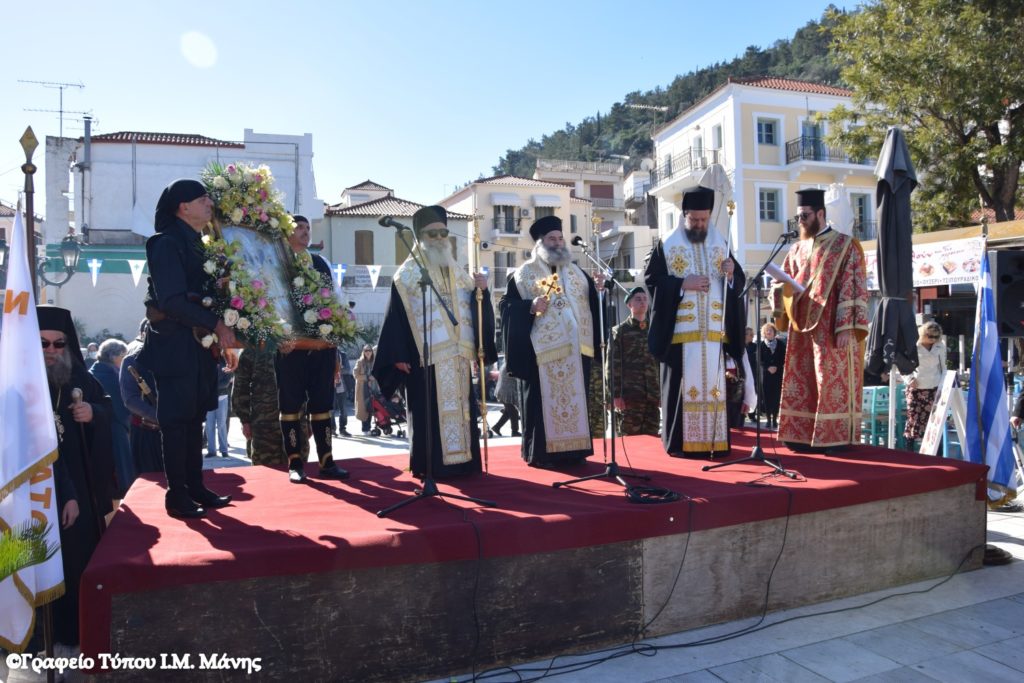 Τιμές απέδωσαν στρατιωτικό άγημα, αντιπροσωεπείες των σχολείων της πόλης, η Φιλαρμονική Αν. Μάνης και μέλη του Σώματος Απόδοσης Τιμών Αν. Μάνης με παραδοσιακές φορεσιές.