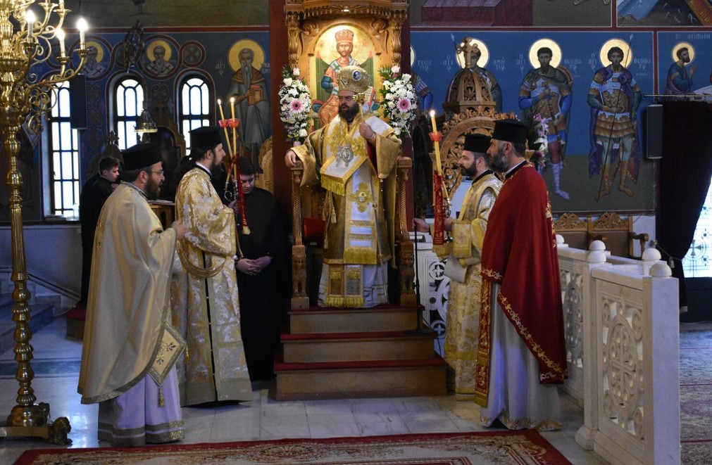Στο τέλος της Θείας Λειτουργίας τέλεσε Επιμνημόσυνη Δέηση υπέρ αναπαύσεως των ψυχών των Αρχιερατευσάντων, Ιερατευσάντων και Διακονησάντων Κληρικών και Ευεργετών της Ιεράς Μητροπόλεως καθώς και των βιαίως κοιμηθέντων αδελφών ημών κατά το σιδηροδρομικόν δυστύχημα στην περιοχή των Τεμπών.