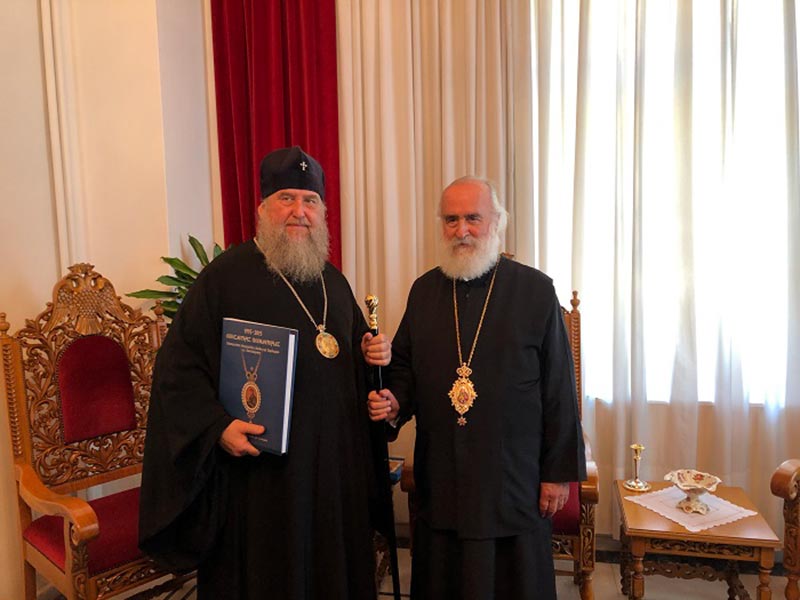 Η επίσκεψη ολοκληρώθηκε με την ανταλλαγή αναμνηστικών και βιβλίων μεταξύ των δύο ιεραρχών.