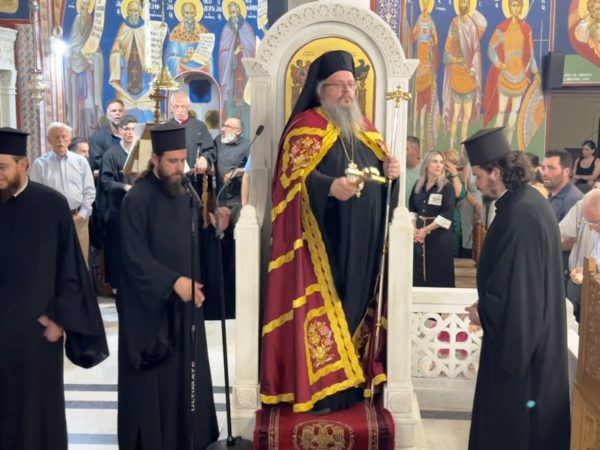 Στην Ακολουθία χοροστάτησε ο Σεβασμιώτατος Μητροπολίτης Λαρίσης και Τυρνάβου κ. Ιερώνυμος, συγχοροστατούντων των Σεβασμιωτάτων Μητροπολιτών Μεσσηνίας κ. Χρυσοστόμου, Ιερισσού, Αγίου Όρους και Αρδαμερίου κ. Θεοκλήτου, του Θεοφιλεστάτου Επισκόπου Κεράμων κ. Βαρθολομαίου και του Ποιμενάρχου κ. Καλλινίκου.