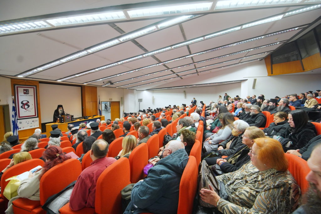 Κεντρικός ομιλητής φέτος ήταν ο Σεβασμιώτατος Μητροπολίτης Πειραιώς κ. Σεραφείμ, ο οποίος ανέπτυξε το θέμα «Ο άνθρωπος κατά τους Τρεις Ιεράρχες και ο ‘’μετάνθρωπος’’ κατά την τεχνολογία».