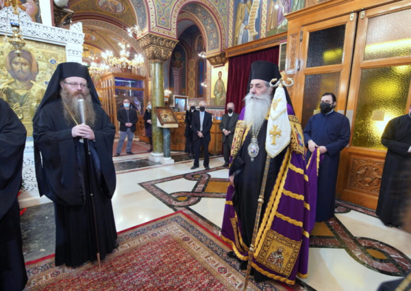 Προ της απολύσεως, ο Σεβασμιώτατος ευχαρίστησε θερμά το Πρόεδρο του ομίλου Alter Ego Media κ.Ευάγγελο Μαρινάκη και την Διευθύνουσα Σύμβουλο κ.Φωτεινή Υψηλάντη «για την χαρά που μας έδωσαν σήμερα, η λατρεία μας να μεταδίδεται στα μήκη και πλάτη του πλανήτη μέσα από την τηλεόραση του MEGA».