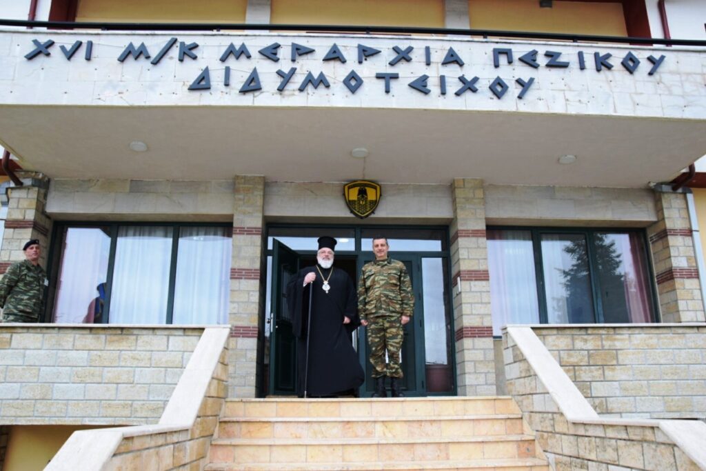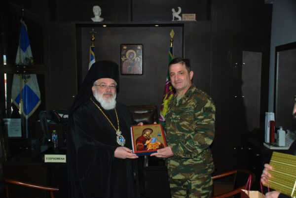 Τον Σεβασμιώτατο επίσης επισκέφθηκε εθιμοτυπικά την Μεγάλη Δευτέρα ο νέος Υποδιοικητής της XVI Μεραρχίας Ταξίαρχος Γεώργιος Βακλατζής. Στους νέους Διοικητές και στον Υποδιοικητή της Μεραρχίας ο Σεβασμιώτατος ευχήθηκε η Υπέρμαχος Στρατηγός να ενδυναμώνει αυτούς στην ευθυνοφόρο και υπεύθυνη αποστολή τους και το Φως της Αναστάσεως να χαρίζει πρόοδο, ειρήνη και ευημερία στην περιοχή.