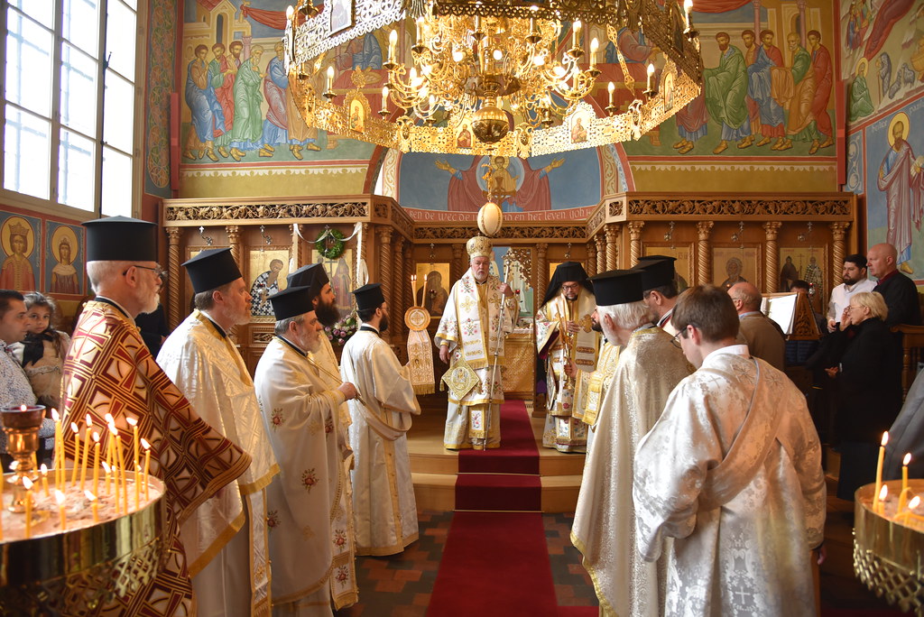 Την παραμονή της εορτής τελέστηκε ο πανηγυρικός Εσπερινός, ο οποίος εψάλλη στην ελληνική από τους πατέρες Ρωμανό και Κωνσταντίνο Κενανίδη, ενώ ανήμερα η πανηγυρική Θεία Λειτουργία. Της Θείας Λειτουργίας προεξήρχε ο Σεβασμιώτατος Μητροπολίτης Βελγίου και Έξαρχος Κάτω Χωρών και Λουξεμβούργου κ. Αθηναγόρας, συλλειτουργούντος του Θεοφιλεστάτου Επισκόπου Απολλωνιάδος κ. Ιωακείμ, βοηθού Επισκόπου της Ιεράς Μητροπόλεως, και συμπαραστατούντων του Αρχιμανδρίτου κ. Ρωμανού Κενανίδη (Θεσσαλονίκη), των Πρωτοπρεσβυτέρων Bart D’huyvetter, Bernard Peckstadt (Μπρυζ), Αθανασίου Καρατζογιάννη (Maasmechelen) και Κωνσταντίνου Κενανίδη (Βρυξέλλες), των Πρεσβυτέρων Ανδρέα Dhoe (Οστάνδη) και Michael Lomax (Βρυξέλλες) καθώς και του Αρχιδιακόνου Αιμιλιανού Χατζηβασιλείου και του Διακόνου Αδαμαντίου Καρφή. Η χορωδία έψαλε υπό την διεύθυνση του κ. Stefaan Coudenys.