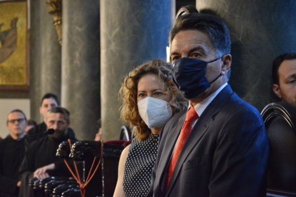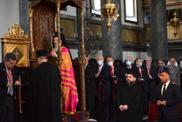 Εκκλησιάστηκαν Ιεράρχες του Θρόνου, ο Πρόεδρος του Διοικητικού Συμβουλίου της Αδελφότητος Οφφικιαλίων «Παναγία η Παμμακάριστος» και Πολιτικός Διοικητής του Αγίου Όρους, Άρχων Έξαρχος κ. Αθανάσιος Μαρτίνος, μαζί με Άρχοντες Οφφικιαλίους του Θρόνου, η κ. Γεωργία Σουλτανοπούλου, Γενική Πρόξενος στην Πόλη, με τον σύζυγό της κ. Ιωάννη Ραπτάκη, Πρέσβη της Ελλάδος στο Ηνωμένο Βασίλειο, πιστοί από την Πόλη και προσκυνητές από το εξωτερικό.