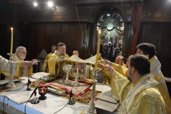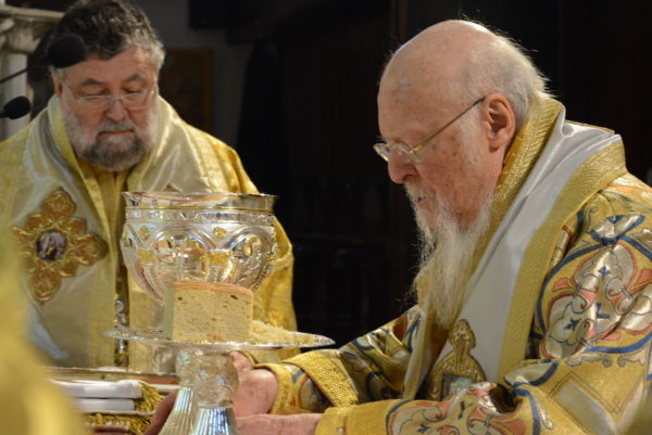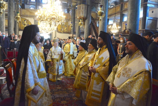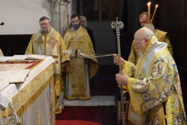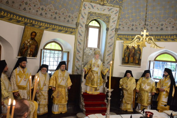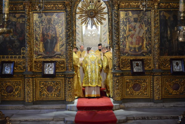 Στην Θεία Λειτουργία προεξήρχε η Α.Θ. Παναγιότης ο Οικουμενικός Πατριάρχης κ.κ. Βαρθολομαίος συμπαραστατούμενος από τους Σεβ. Μητροπολίτες Γέροντα Πριγκηποννήσων κ. Δημήτριο, Μυριοφύτου και Περιστάσεως κ. Ειρηναίο, Μύρων κ. Χρυσόστομο, Ικονίου κ. Θεόληπτο, Καλλιουπόλεως και Μαδύτου κ. Στέφανο, Σαράντα Εκκλησιών κ. Ανδρέα και Προύσης κ. Ιωακείμ.