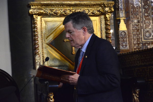 Αμέσως μετά, ο Άρχων κ. Αθανάσιος Μαρτίνος, στην ομιλία του, κατά τη δεξίωση που παρετέθη για την εορτή στην Αίθουσα του Θρόνου, ευχαρίστησε τον Παναγιώτατο για την εμπιστοσύνη με την οποία περιβάλλει τα μέλη του Δ.Σ. της Αδελφότητάς των, επισημαίνοντας ότι οι Οφφικιάλιοι του Θρόνου είναι οι «καλοί Σαμαρείτες», οι συμπαραστάτες του Οικουμενικού Πατριαρχείου στην Ελλάδα, την Ευρώπη και αλλού.