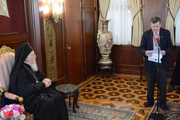 «Οι σημερινές εξελίξεις στον κόσμο δικαιώνουν τις επιλογές και την στάση σας στα μεγάλα ζητήματα της ανθρωπότητας», είπε ο κ. Μαρτίνος και αναφέρθηκε στις πρωτοβουλίες του Παναγιωτάτου για την προστασία του φυσικού περιβάλλοντος και την ευαισθητοποίηση της παγκόσμιας κοινής γνώμης για την κλιματική αλλαγή. Εξέφρασε δε τη χαρά και τη προσμονή του για την επίσκεψη του Οικουμενικού Πατριάρχου στη Θεσσαλονίκη και το Άγιον Όρος, την οποία χαρακτήρισε «μεγάλη ευλογία».