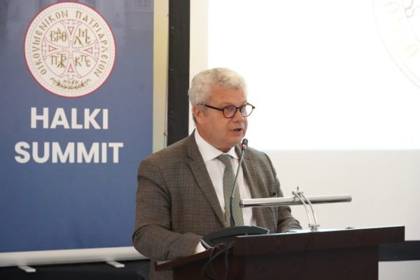 Προηγουμένως, τον Παναγιώτατο και τους συνέδρους καλωσόρισε ο Ιερολ. Αρχιδιάκονος του Οικουμενικού Θρόνου κ. Ιωάννης Χρυσαυγής, υπεύθυνος για την οργάνωση του Συνεδρίου, ενώ σύντομους χαιρετισμούς απηύθυναν οι Καθηγητές Ιωάννης Καλαβρουζιώτης, Πρόεδρος του Ελληνικού Ανοικτού Πανεπιστημίου, σε συνεργασία με το οποίο διεξάγεται το “Halki Summit VI”, και Volkan Oral, από το Istanbul Aydin University.