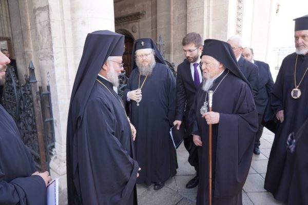 Ο Παναγιώτατος συνοδευόταν από τους Σεβασμιωτάτους Μητροπολίτες Γέροντα Χαλκηδόνος κ. Εμμανουήλ και Καλλιουπόλεως και Μαδύτου κ. Στέφανο, τους Πανοσιολ. Μ. Εκκλησιάρχη κ. Αέτιο, Διευθυντή του Ιδιαιτέρου Πατριαρχικού Γραφείου, Δευτερεύοντα κ. Καλλίνικο και Αρχιμανδρίτη του Οικουμενικού Θρόνου κ. Χαράλαμπο Νichev, τον Άρχοντα της Μ.τ.Χ.Ε. κ. Boris Gurov, και τους κυρίους Νικόλαο-Γεώργιο Παπαχρήστου, Διευθυντή του Γραφείου Τύπου και Επικοινωνίας του Οικουμενικού Πατριαρχείου, και Πέτρο Μπαζγκάρλο, εκ των Γραμματέων του Πατριαρχείου.