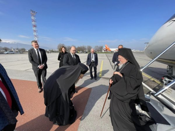 Νωρίτερα τον Παναγιώτατο υποδέχθηκε στο αεροδρόμιο ο Μητροπολίτης Ρούσσε κ. Ναούμ.