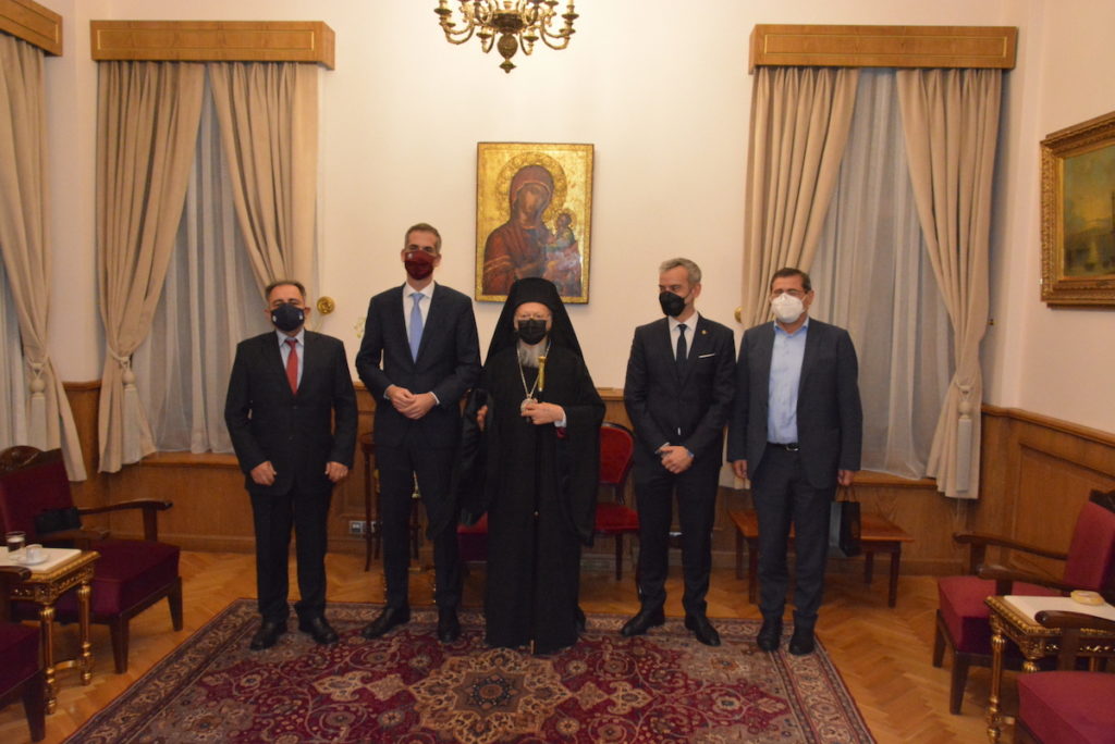 Ο Οικουμενικός Πατριάρχης κ.κ. Βαρθολομαίος δέχθηκε χθες, Τρίτη, 30 Νοεμβρίου 2021, το απόγευμα, τους Δημάρχους Αθηναίων κ. Κώστα Μπακογιάννη, Θεσσαλονίκης κ. Κωνσταντίνο Ζέρβα, Πατρέων κ. Κώστα Πελετίδη και Μυτιλήνης κ. Στρατή Κύτελη, μαζί με στελέχη των Δήμων τους, οι οποίοι επισκέπτονται την Πόλη στο πλαίσιο συνεδρίου που διοργάνωσε ο Δήμαρχος του Μητροπολιτικού Δήμου της Πόλεως κ. Ekrem İmamoğlu.