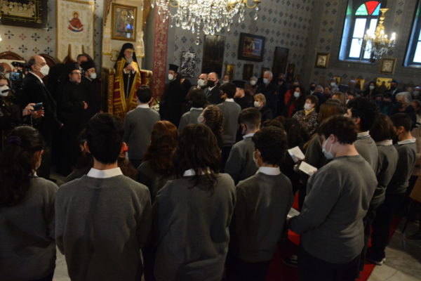 Η Ορθοδοξία και η Ρωμηοσύνη, η πίστις και η γλώσσα μας είναι αχώριστες, είπε εμφανώς συγκινημένος ο Παναγιώτατος Οικουμενικός Πατριάρχης κ.κ. Βαρθολομαίος απευθυνόμενος σε μαθητές και μαθήτριες του Ζωγραφείου Γυμνασίου-Λυκείου της Κωνσταντινούπολης, που έψαλαν το απόγευμα της Παρασκευής, 25 Μαρτίου 2022, στο Ιερό Αγίασμα της Παναγίας των Βλαχερνών, το κοντάκιο του Ακαθίστου Ύμνου «Τη Υπερμάχω», στον ίδιο τόπο όπου πρωτακούστηκε το 626 μ.Χ.