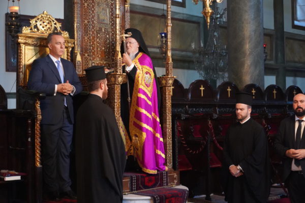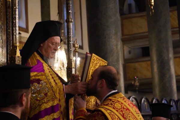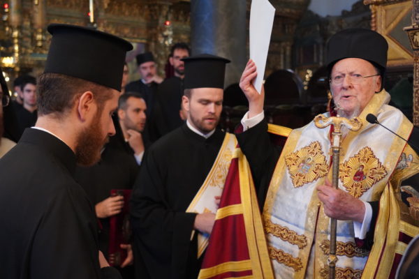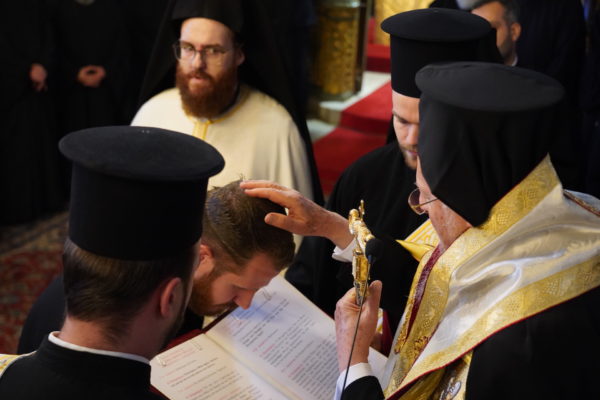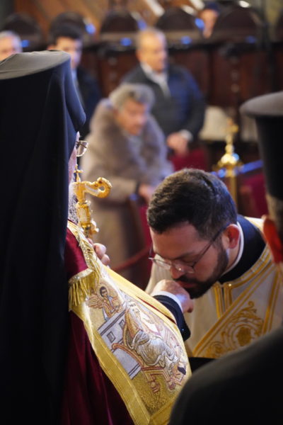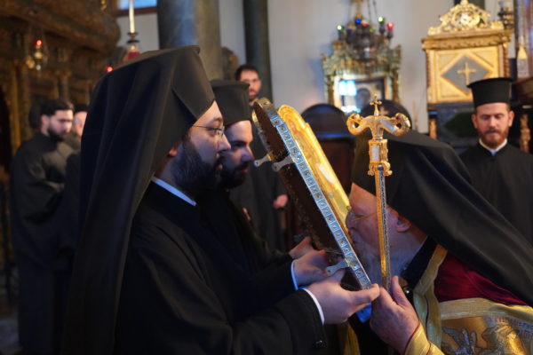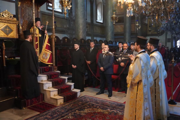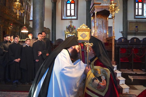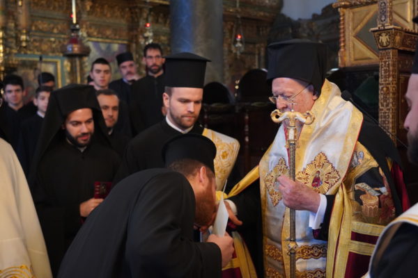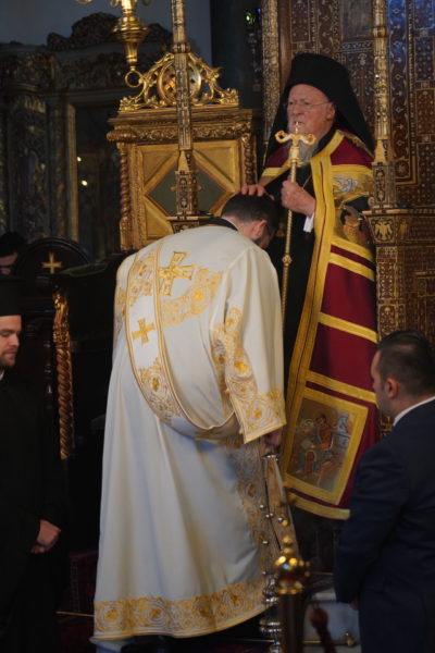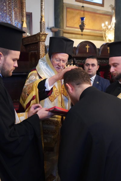 Στο τέλος της Θείας Λειτουργίας ο Οικουμενικός Πατριάρχης χειροθέτησε τον νέο Πρεσβύτερο σε Αρχιμανδρίτη της Αγίας του Χριστού Μεγάλης Εκκλησίας.