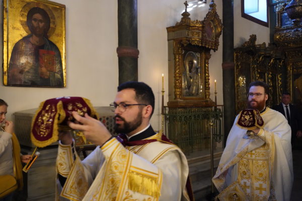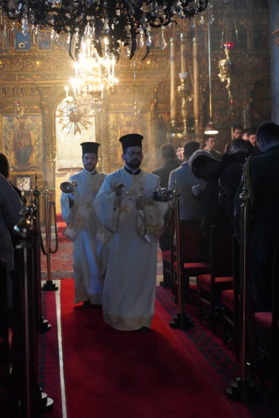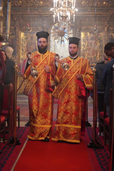Εκκλησιάστηκαν οι Σεβασμιώτατοι Μητροπολίτες Γέρων Χαλκηδόνος κ. Εμμανουήλ, Μύρων κ. Χρυσόστομος, Ικονίου κ. Θεόληπτος, Αρκαλοχωρίου, Καστελλίου και Βιάννου κ. Ανδρέας, Σαράντα Εκκλησιών κ. Ανδρέας, οι Θεοφιλέστατοι Επίσκοποι Αλικαρνασσού κ. Αδριανός, Δαφνουσίας κ. Σμάραγδος και Ξανθουπόλεως κ. Παΐσιος, ο Θεοφιλέστατος εψηφισμένος Μητροπολίτης Σελευκείας κ. Θεόδωρος, η οικογένεια του νέου Μ. Αρχιδιακόνου, πιστοί από την Πόλη και προσκυνητές από το εξωτερικό.
