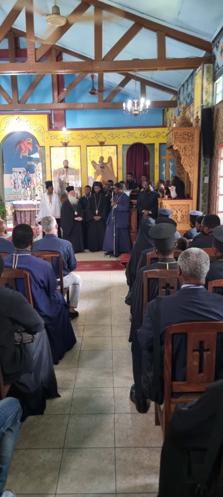 Εν συνεχεία, ο Μακαριώτατος, ακούραστος, ευλόγησε τα Γραφεία της Ιεράς Μητροπόλεως Κινσάσας και τους εκεί εργαζομένους, κληρικούς και καϊκούς και το απόγευμα της ιδίας ημέρας, χοροστάτησε στην Ακολουθία των Β’ Χαιρετισμῶν της Παναγίας μας, στον Ιερό Ναό του Αγίου Νικολάου της Ελληνικής Κοινότητας και ομίλησε πατρικώς και δεόντως στο πυκνό εκκλησίασμα.