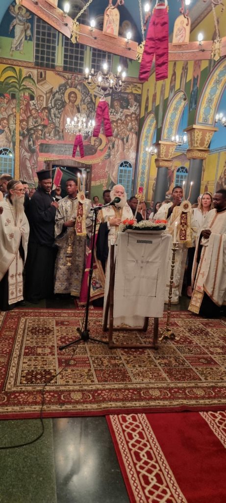 Στο πλαίσιο της ευλογητής επίσκεψης του κοντά στους Κονγκολέζους αδελφούς της Ιεράς Μητροπόλεως Κινσάσας, ο Μακαριώτατος ενέταξε και το πέρασμά του από τον Καθεδρικό Ναό του Αγίου Μάρκου της Μητροπόλεώς, που ως αύρα λεπτή ήλθε να ευφράνει τις καρδιές μικρών και μεγάλων, νέων και γερόντων, οι οποίοι άφησαν τις καρδιές τους να εκδηλώσουν τα αισθήματα, σεβασμού και υϊικής αγάπης προς τον πνευματικό πατέρα τους, αναγνωρίζοντας τους πολλούς κόπους και τη θυσιαστική αγάπη του για το σπουδαίο έργο της Ιεραποστολής, στις εσχατιές της Αφρικανικής Ηπείρου.