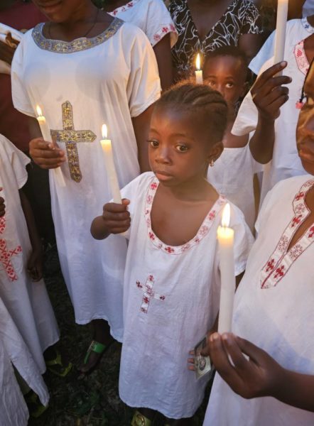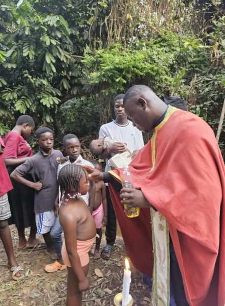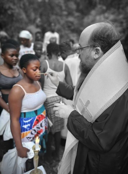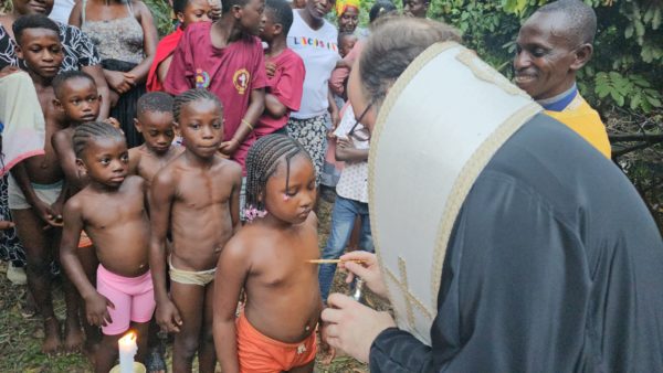 Οι νέοι Χριστιανοί, οι οποίοι συμμετείχαν με πνευματική χαρά και ενθουσιασμό για την παρουσία του Επισκόπου τους, είχαν συγκεντρωθεί στις όχθες της λίμνης, ψάλλοντας το «Όσοι εις Χριστόν εβαπτίσθητε, Χριστόν ενεδύσασθε. Αλληλούια» στην γλώσσα Twi.