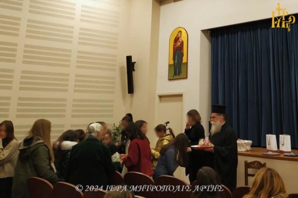 Συγκεκριμένα, ο Σεβασμιώτατος, το απόγευμα, στο Πνευματικό Κέντρο του Αγίου Ιωάννου του Θεολόγου, στην πόλη της Άρτας, ευλόγησε την Βασιλόπιτα του Κατηχητικού θηλέων και ομίλησε επίκαιρα στις μαθήτριες.