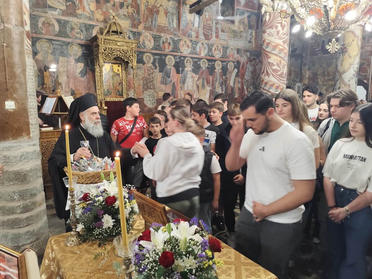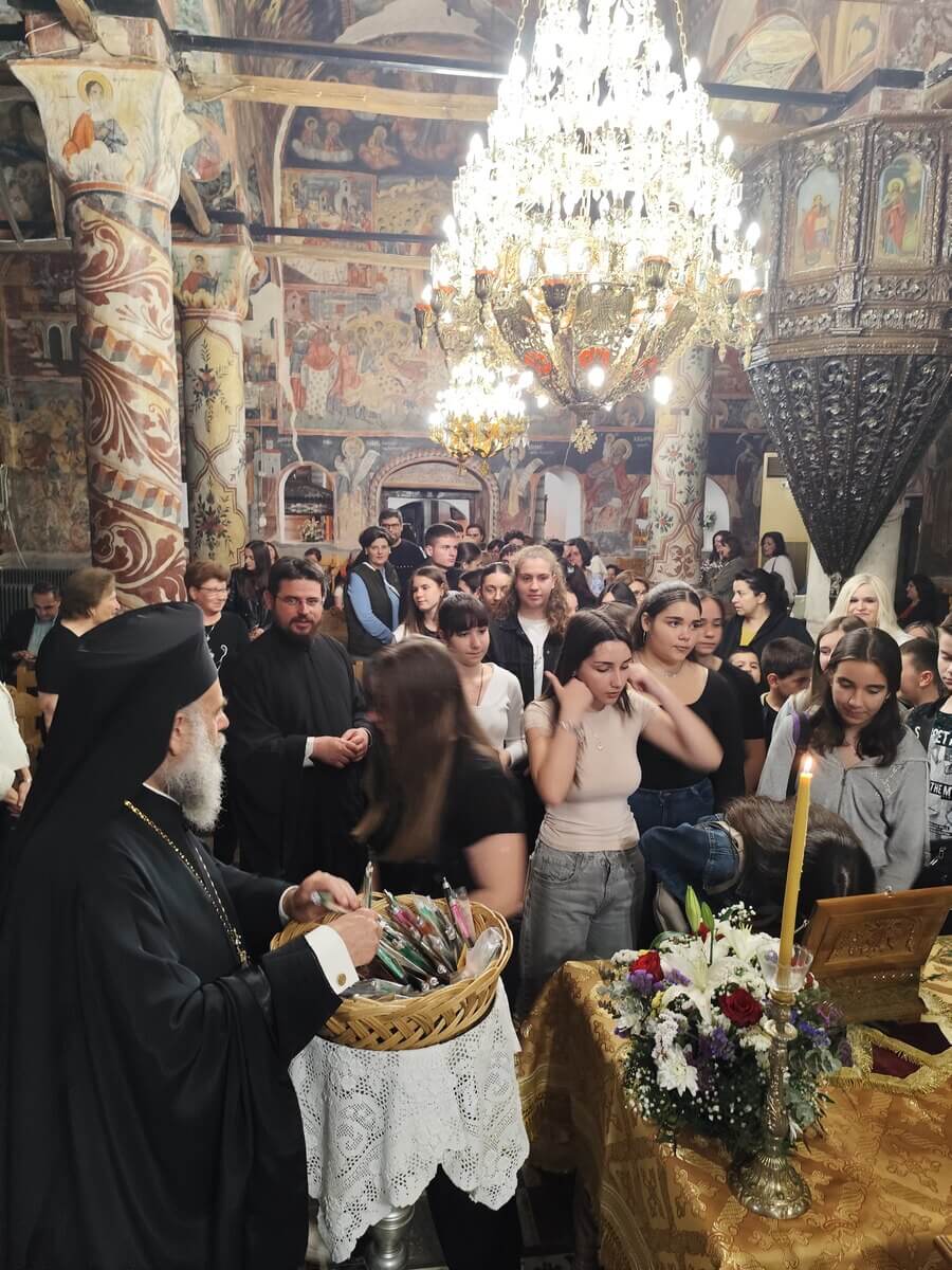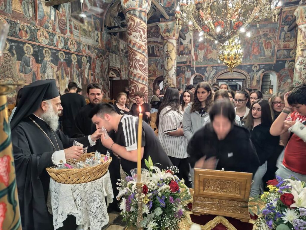Μετά το πέρας της Παράκλησης, οι μαθητές και οι μαθήτριες προσκύνησαν ευλαβικά το Ιερό Λείψανο του Αγίου Νικολάου και στη συνέχεια έλαβαν από τον Σεπτό Ποιμενάρχη ένα αναμνηστικό, συνοδευόμενο από θερμές ευχές και προσευχές. Ο Σεβασμιώτατος εξέφρασε την αγάπη και την ελπίδα του για την επιτυχία των παιδιών, ευχόμενος κάθε καλό στον αγώνα τους για την επίτευξη των στόχων τους.
