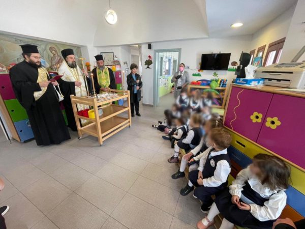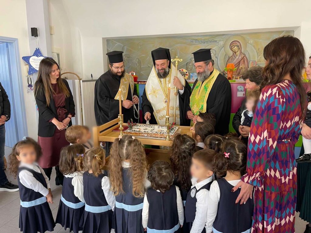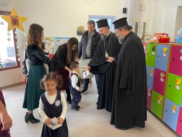 Ο Σεβασμιώτατος ευχήθηκε στα μικρά παιδιά που φοιτούν στον παιδικό σταθμό καλή, ευλογημένη και δημιουργική χρονιά και τους προσέφερε ένα μικρό βιβλιαράκι με την ιστορία της βασιλόπιτας.