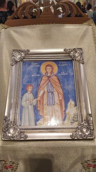 Στην αρχή τελέστηκε στο Παρεκκλήσιο Αγίου Φανουρίου η ακολουθία ευλόγησης των δώρων, άρτου, οίνου και κολύβων, γνωστή στη σερβική λειτουργική παράδοση ως «Σλάβα», με την ευκαιρία μνήμης της Οσίας Θεοδώρας της εν Αλεξανδρεία, η οποία ιδιαιτέρως τιμάται στην Πιερία και μάλιστα στον Κολινδρό όπου υπάρχει Ενοριακός Ναός αφιερωμένος στη μνήμη της.