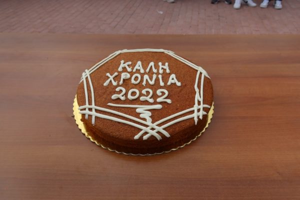Ακόμη, ευλόγησε την Αγιοβασιλειόπιτα του σχολείου και διένειμε προς τους μαθητές ειδικά φιλοτεχνημένα τετράδια.