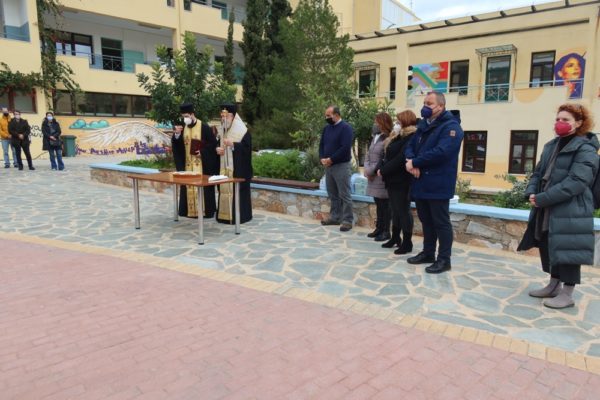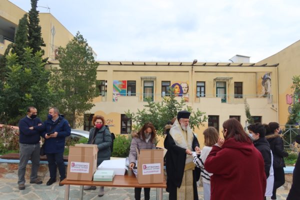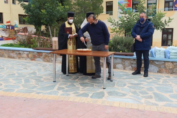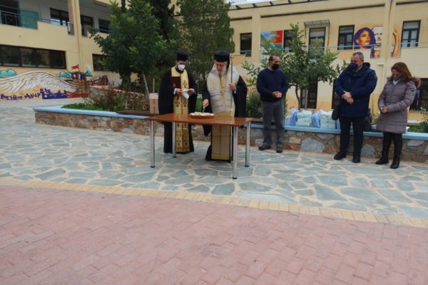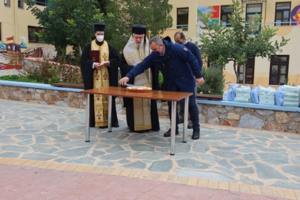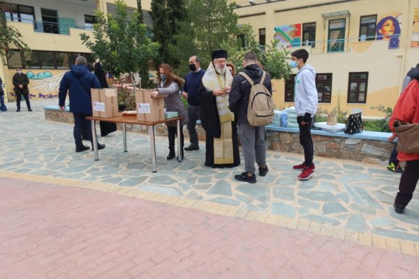 Συγκεκριμένα, χθες, 21 Ιανουαρίου 2022, στον αύλειο χώρο του σχολείου,  ο Σεβασμιώτατος αφού μίλησε προς τους μαθητές και τους απηύθυνε πατρικές νουθεσίες και συμβουλές, ευχαρίστησε και συνεχάρη για το έργο τους τους Εκπαιδευτικούς.