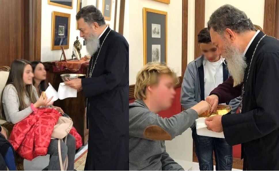 Ο Σεβασμιώτατος ευχαρίστησε τους συνοδούς καθηγητές και τα παιδιά, για την ευγενική τους επιθυμία να επισκεφθούν στην Ιερά Μητρόπολη και πριν την αναχώρηση τους διένειμε αναμνηστικές ευλογίες.