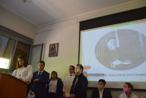 Στις εργασίες της διημερίδας, 7-8 Μαΐου 2022, παρουσιάσθηκαν από ομάδα μαθητών του Σχολείου στιγμιότυπα από την πορεία και το έργο του Αγίου στην περιοχή της Λαμίας.