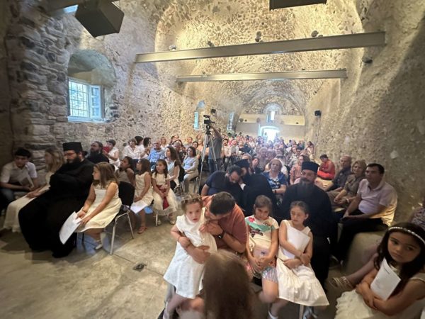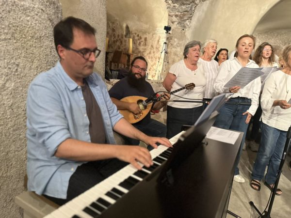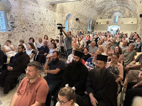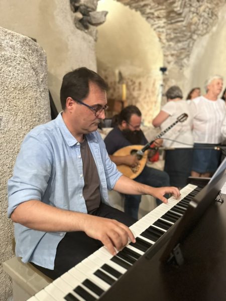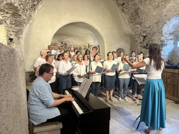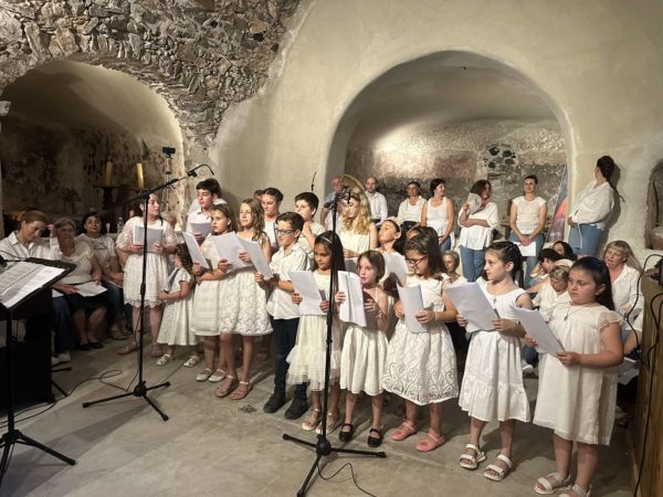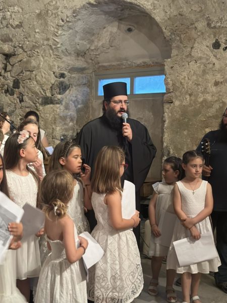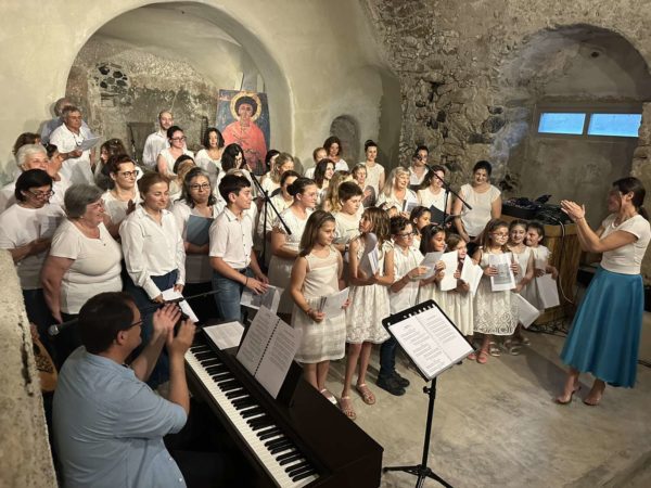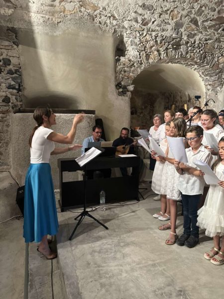 Στο πνευματικό κέντρο του Αγίου Παντελεήμονα στην Έξω Γωνιά Θήρας πραγματοποιήθηκε την Κυριακή 2 Ιουνίου 2024 η καταληκτική για εφέτος μουσική εκδήλωση της χορωδίας του Γραφείου Νεότητας της Ιεράς Μητροπόλεως Θήρας, υπό τη διεύθυνση των καθηγητών μουσικής Σοφίας Παπαδημητροπούλου και Γεωργίου Ρούσσου, καθηγητών του Εθνικού Ωδείου Θήρας με την καλλιτεχνική και όχι μόνο υποστήριξη του οποίου λειτουργεί όλα τα χρόνια η χορωδία.