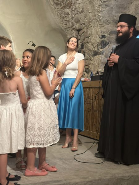 Μετά την ολοκλήρωση του μουσικού προγράμματος ο υπεύθυνος του Γραφείου Νεότητας της Μητροπόλεως, π. Ιγνάτιος Αργυρός, μετέφερε τις ευχές και ευχαριστίες του Σεβασμιωτάτου Μητροπολίτου Θήρας κ. Αμφιλοχίου προς τους καθηγητές και τα μέλη της χορωδίας, καθώς συνοδικές υποχρεώσεις τον ανάγκασαν να απουσιάζει παρά τη θέλησή του να συμμετάσχει και να παρακολουθεί κάθε εκδήλωση της χορωδίας.