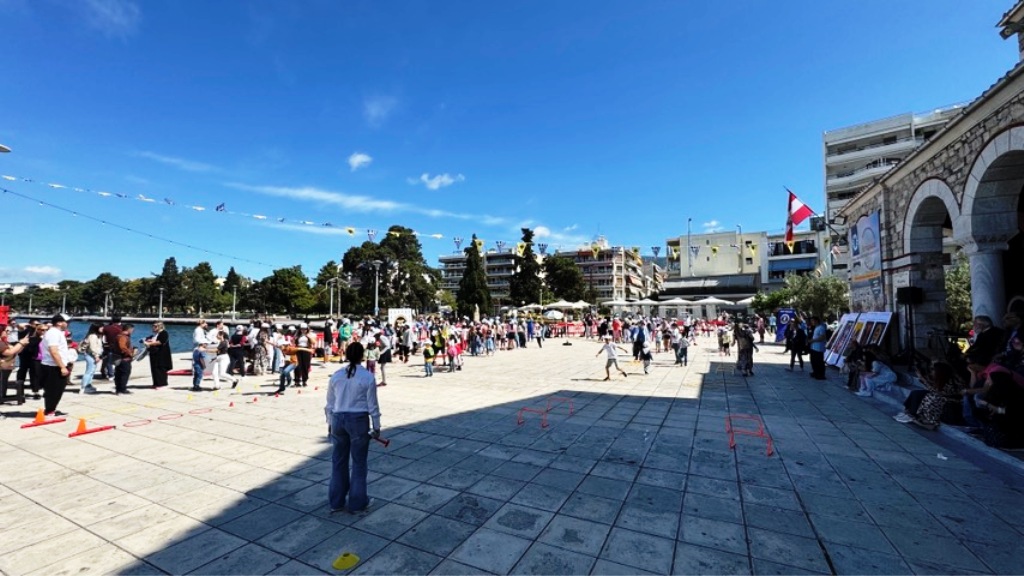 Ακολούθως, όλοι οι συμμετέχοντες μετακινήθηκαν στο προαύλιο του ναού, στην παραλία του Βόλου, όπου είχαν την ευκαιρία μαζί με τους κατηχητές τους  να συμμετέχουν στην εκδήλωση «12 ΑΓΙΟΙ ΑΘΛΗΤΕΣ» και να περάσουν από 12 αθλητικούς σταθμούς, όπου παίζοντας, γνώρισαν 12 Αγίους της περιοχής.