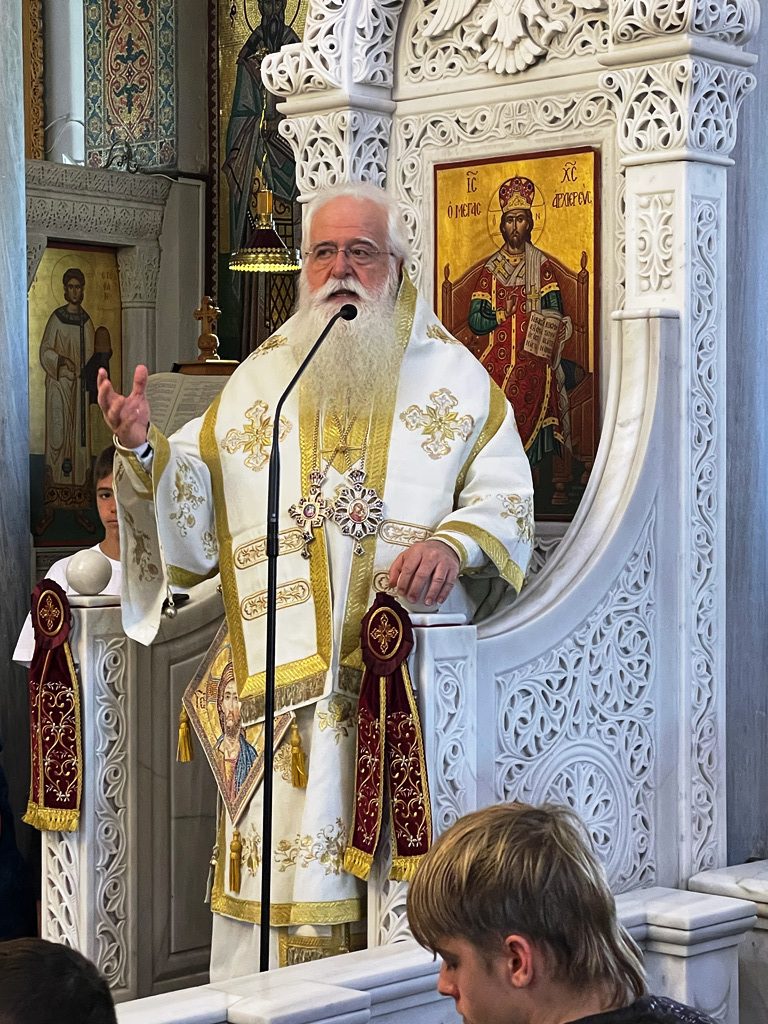 Στη συνέχεια ο Σεβασμιώτατος εξήγησε απλά και παιδαγωγικά τα σημεία της Θείας Λειτουργίας, καλώντας τα παιδιά να κατανοήσουν το μυστήριο στο οποίο συμμετέχουν και να κοινωνούν συνειδητά και με πίστη. Τους υπενθύμισε ότι «όλοι μαζί – κληρικοί, λαϊκοί, μικροί και μεγάλοι – αποτελούμε το σώμα του Χριστού και λειτουργούμε ως μία Εκκλησία».