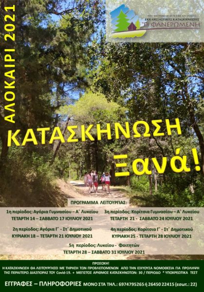 Η Κατασκήνωση θα λειτουργήσει φέτος σύμφωνα με το εξής πρόγραμμα: