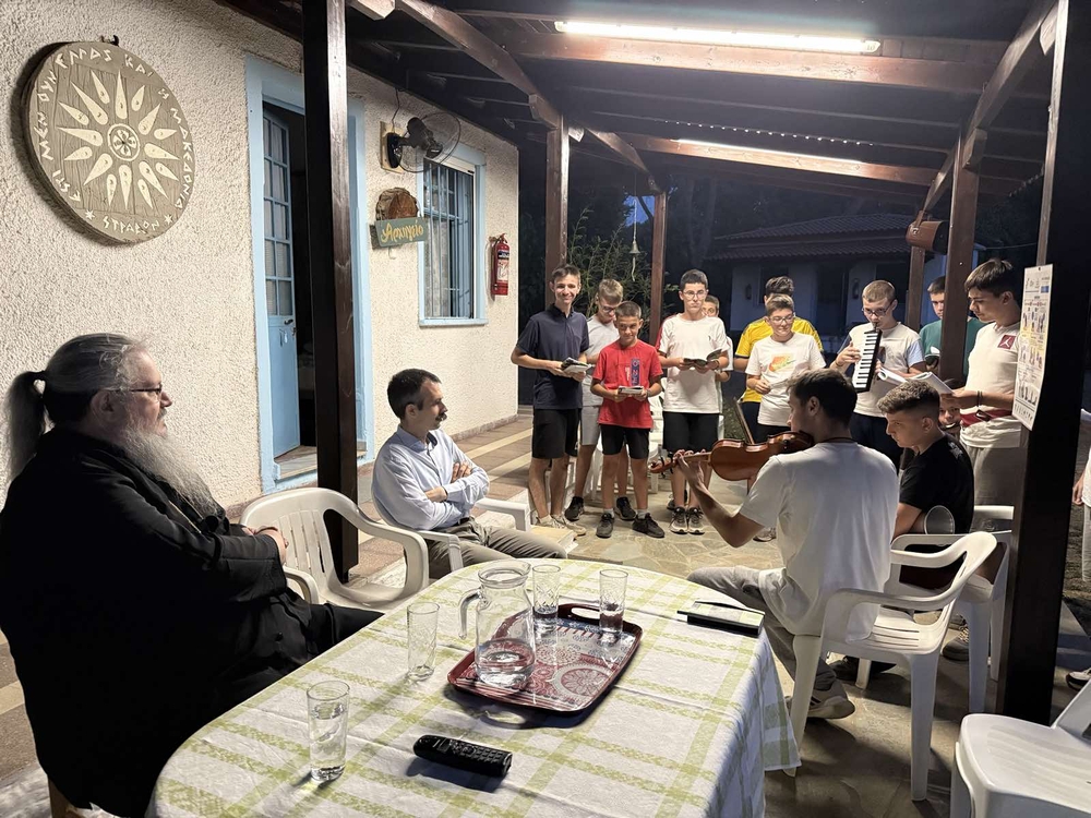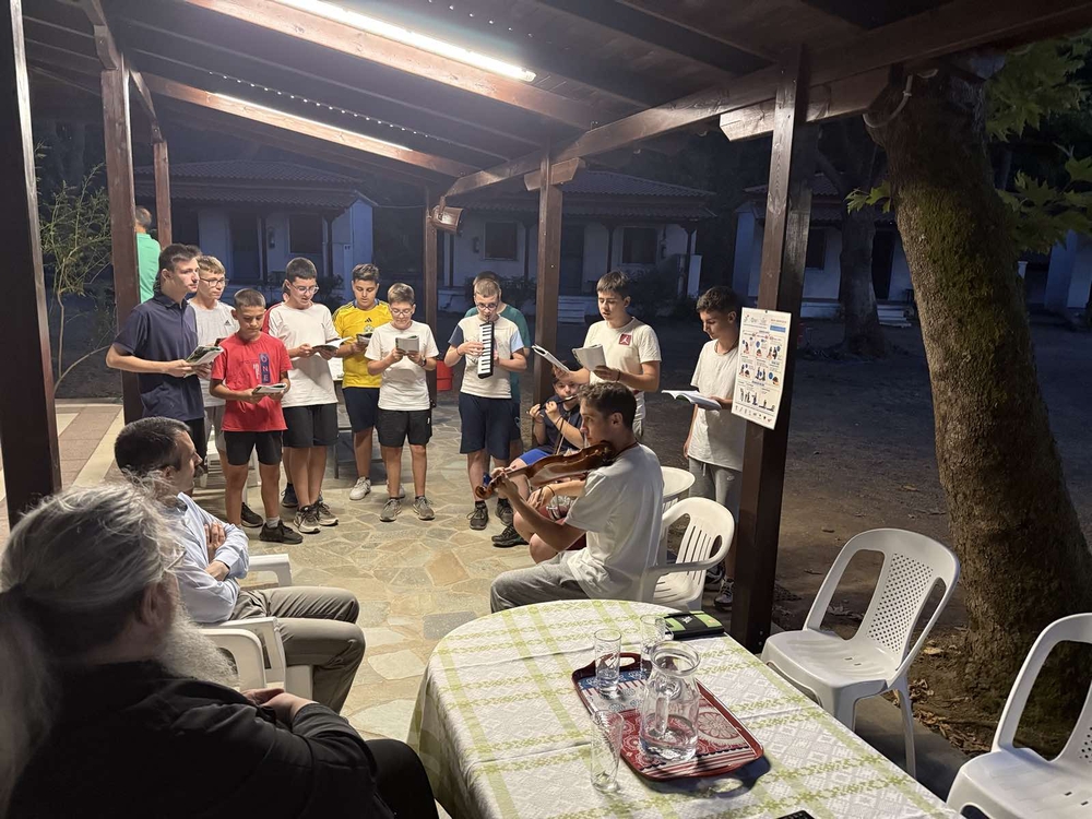 Στη συνέχεια τα κατασκηνωτικά τραγούδια δημιούργησαν μία πολύ όμορφη ατμόσφαιρα δυναμισμού και νεανικότητας οπότε ο Σεβασμιώτατος χάρηκε με την χαρά των παιδιών, καθώς διαπίστωσε την ορμή τους και τη διάθεσή τους να συνεχίσουν αυτό που η Ορθόδοξη Εκκλησία διεκδικεί από την κάθε γενιά, την ορθότητα της Πίστεως, το Ορθόδοξο Φρόνημα, το βίωμα που οδηγεί σε πνευματικές καταστάσεις.