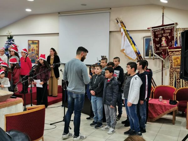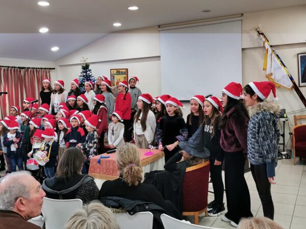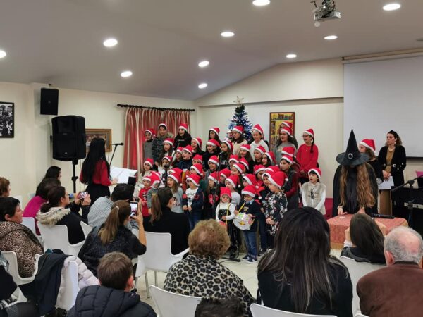 Η Βυζαντινή χορωδία παρουσίασε χριστουγεννιατικους βυζαντινούς ύμνους στην αρχή και το τέλος της γιορτής, την οποία παρακολούθησε πλήθος κόσμου.